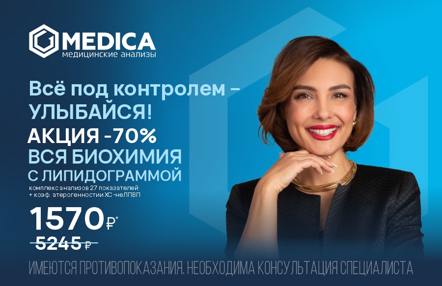 Все под контролем - улыбайся! Вся биохимия с липидограммой за 1570 руб.